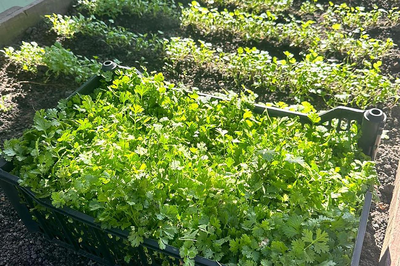 A horta é um espaço dedicado ao cultivo de plantas variadas, que inclui temperos como cheiro verde e legumes como quiabo e ora-pro-nóbis. A iniciativa não apenas fornece alimentos frescos às refeições preparadas na unidade hospitalar, como também atua como um espaço terapêutico para pacientes internados.