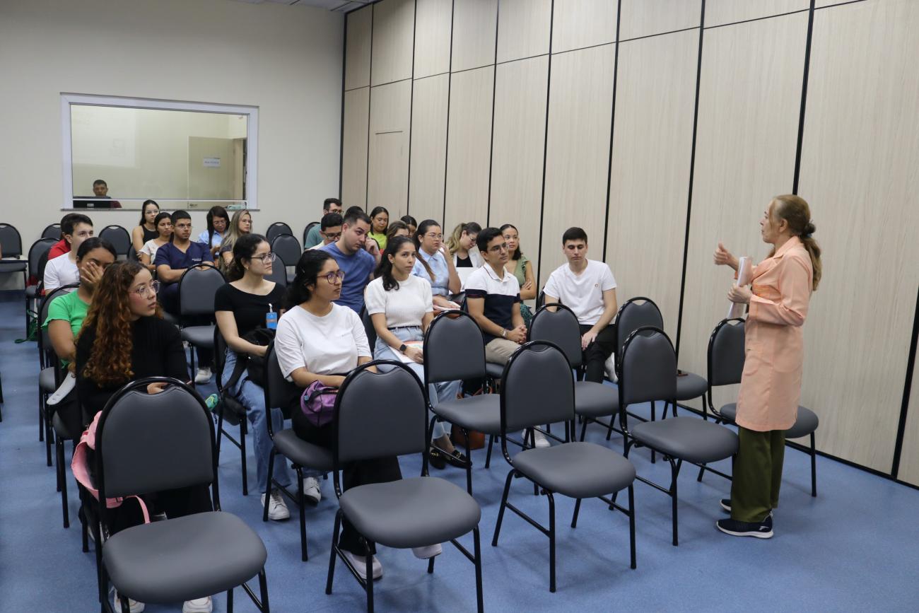 Doutora Vilma Hutim ministra aula para acadêmicos na Fundação Santa Casa do Pará“Acho que hoje o nosso paciente do SUS está de parabéns porque a estrutura que está sendo oferecida aos pacientes, dos recursos que tem o hospital, como os mais diversos exames além dos profissionais que são necessários para acompanhar o paciente entrar e sair daqui muito melhor do que entrou. É uma oportunidade de saúde para o paciente e isso é excelente. Destaca Hiago.