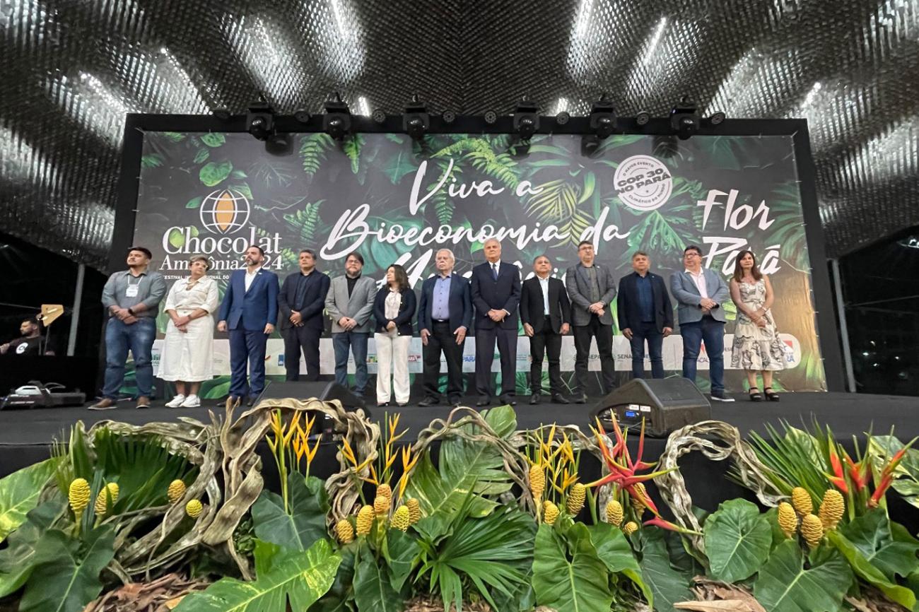 Solenidade - A solenidade de abertura do Chocolat Amazônia ocorreu no palco instalado no Hangar. O anfitrião do evento, secretário de desenvolvimento agropecuário e da pesca, Giovanni Queiroz, que representou o governador Helder Barbalho, disse que o Pará sentem-se honrado em realizar um festival de tamanha importância que é considerado o maior do segmento na América Latina. Ressaltou a hegemonia do estado paraense no cultivo do cacau de origem que prima pela sustentabilidade e também pela valorização do agricultor. O gestor lembrou que mais de 90% do cacau cultivado na Amazônia é oriundo da agricultura familiar.