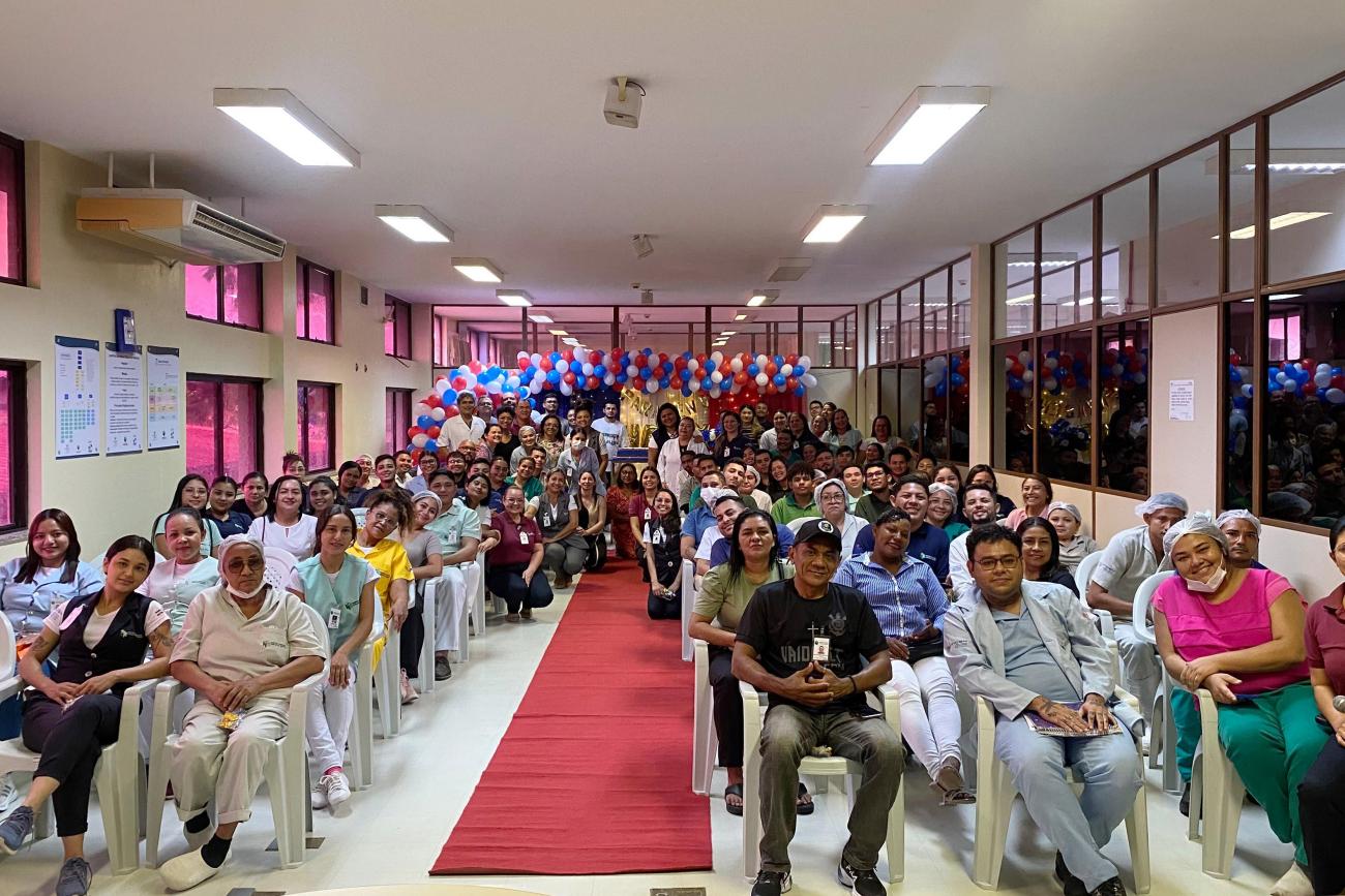 Programação - Em comemoração aos 14 anos do Hospital Regional Público do Marajó (HRPM), a gestão da unidade promove um momento comemorativo no Auditório do hospital. O evento contou coma participação das equipes administrativa, assistencial e de apoio, além de usuários e seus acompanhantes na Recepção Central, onde uma faixa alusiva ao aniversário foi exposta. A celebração incluiu apresentação musical; fala da diretoria quanto ao histórico de desempenho, conquistas, desafios, ações a melhor, e agradecimentos; exibição de um vídeo comemorativo; sorteio de brindes; bolo de aniversário; e o tradicional “Parabéns a Você”.