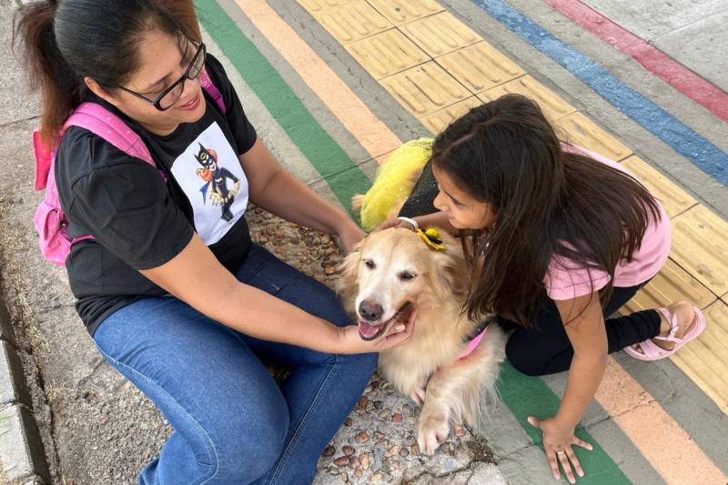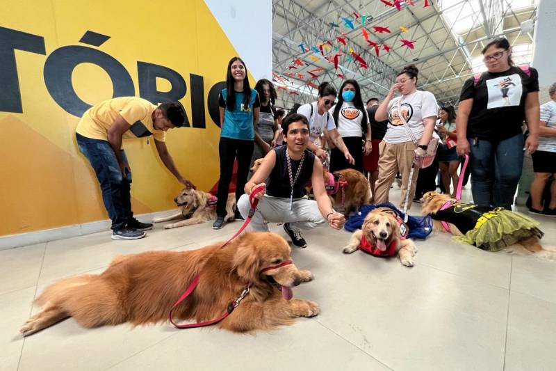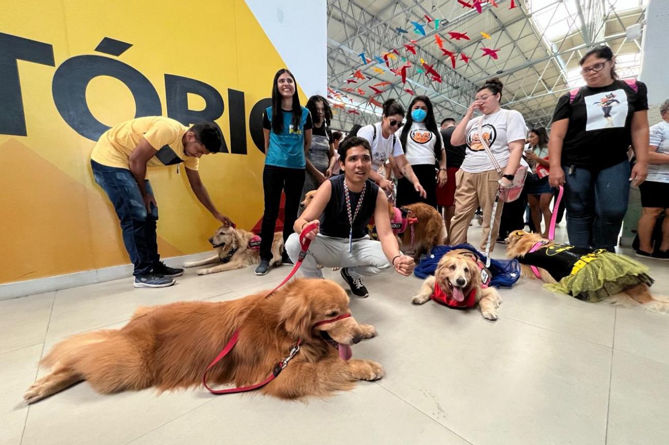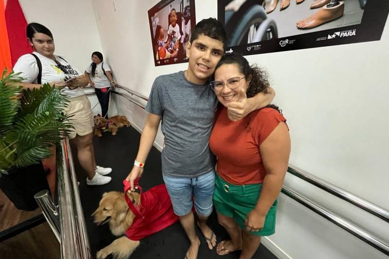 Laudiane Farias, 39 anos, e o filho, Matheus Oliveira, de 16 anos, estiveram entre os participantes da programação. A mãe do usuário destaca que a presença dos Goldens proporcionou ao jovem com diagnóstico do Transtorno do Espectro Autista (TEA) momentos de interação social.
