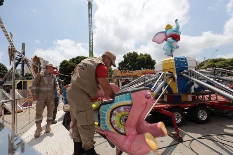 "Verificar se tudo aquilo aprovado no projeto foi executado corretamente, estabilidade de cada brinquedo, se possui o aterramento, que é para evitar uma descarga elétrica; se a quantidade de saída de emergência está adequada para a população e os extintores, se eles estão devidamente dentro do prazo de validade, se estão pressurizados. Por final, o teste de cada brinquedo, onde a gente simula um brinquedo funcionando, uma queda de energia, e o operador vai retirar a pessoa que está ali no brinquedo de forma mecânica. Se tudo isso estiver ok, a gente faz a liberação da licença do parque", explica Raimundo Moura, tenente-coronel e subdiretor do Centro de Atividades Técnicas (CAT) do Corpo de Bombeiros Militar do Pará.