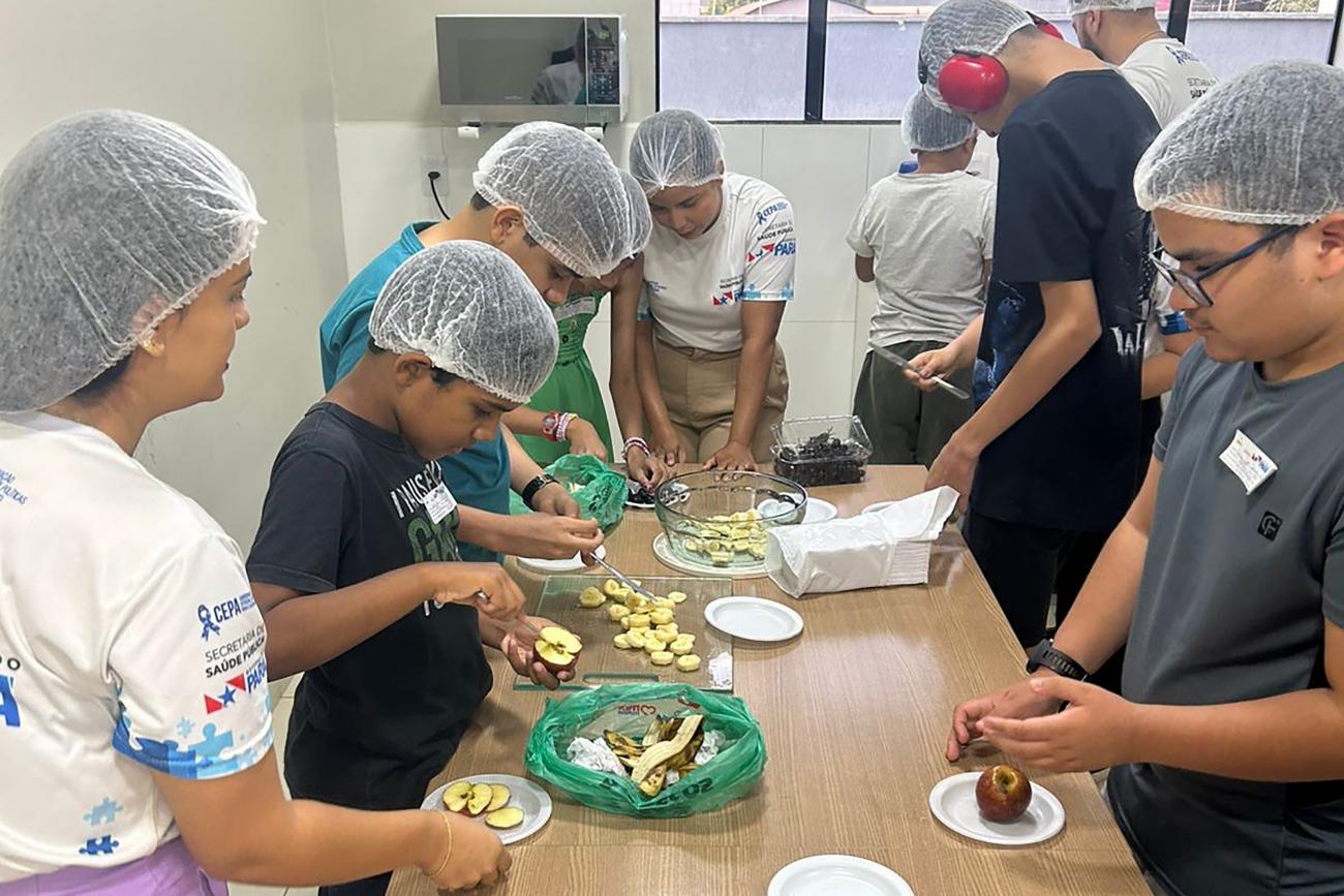 Um corte de fruta aqui, outro ali. A identificação dos alimentos, das texturas, dos sabores e das cores. Devidamente separados, é hora de seguir com o passo a passo da receita. O que parece uma brincadeira de pequenos "chefinhos", é nada mais que uma Oficina Interativa de Culinária voltada para adolescentes e pré-adolescentes com autismo. É que de uma forma criativa e saborosa, os usuários do Núcleo de Atendimento ao Transtorno do Espectro Autista (Natea), da Policlínica Lago de Tucuruí, no sudeste paraense, estimularam sua autonomia, independência e interação social com ações do cotidiano.