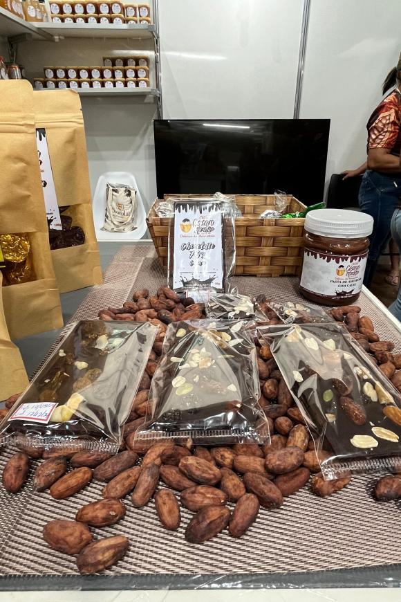 São Félix- No corredor ao lado do empreendimento Dona Rosa, outro grupo de mulheres também se destaca e está entre os espaços mais procurados no Chocolat Amazônia. O estande da Associação de Mulheres Produtoras de Polpas de Frutas (AMPPF), do município de São Felix do Xingu. A entidade conta com 43 mulheres e 20 homens.
