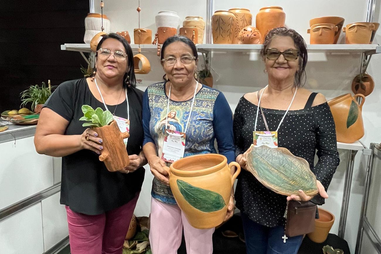 Entre as participantes que representam as empreendedoras no festival estão as ceramistas da Associação Cerâmica Chicano, de Santa Bárbara do Pará, município que integra a Região Metropolitana de Belém. O estande oferta vasos para plantas, cerâmica decorativa, luminárias para jardinagem, biojoias e até o cacau representado em cerâmica.