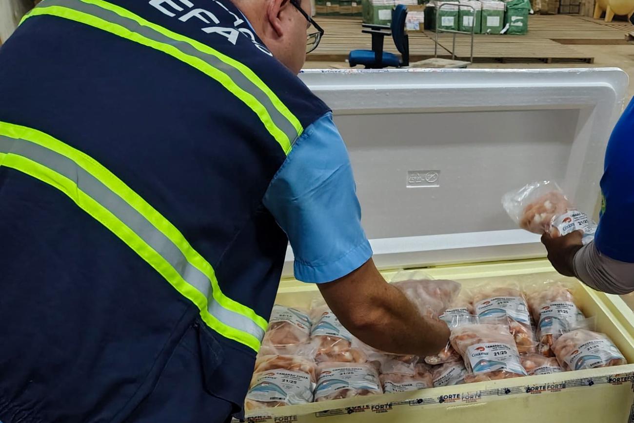 A carga então foi direcionada ao depósito da unidade fazendária para a pesagem das caixas e inspeção física. No momento da pesagem, foi constatado um total de 500 quilos de camarão cinza congelado, tamanho GG com casca, em desconformidade com a nota fiscal apresentada.