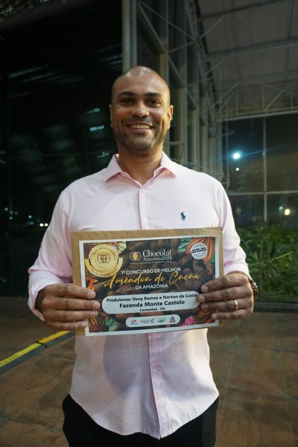 O município de Castanhal, no nordeste paraense, foi o grande vencedor do concurso de melhor amêndoa anunciado na noite do último sábado, 28, no Festival Internacional de Chocolate e Cacau que encerra neste domingo, 29, no Hangar Centro de Convenções e Feiras da Amazônia, em Belém. A amêndoa vencedora na categoria mistura é produzida na Fazenda Monte Castelo pelos produtores Osny Ramos e Norton da Costa.
