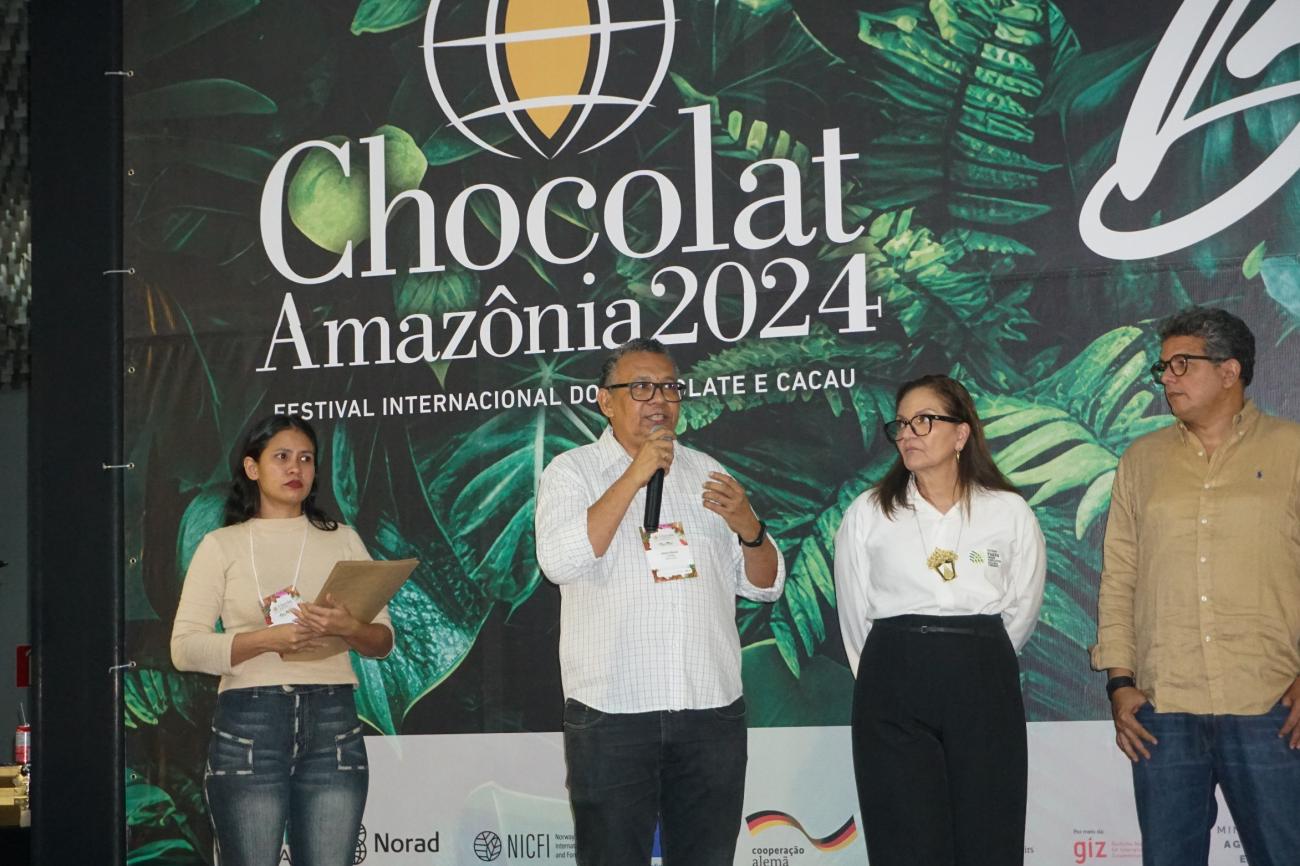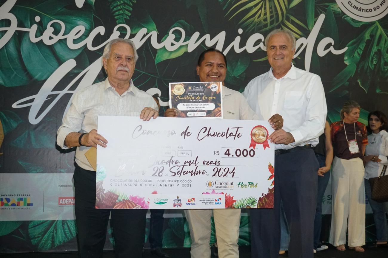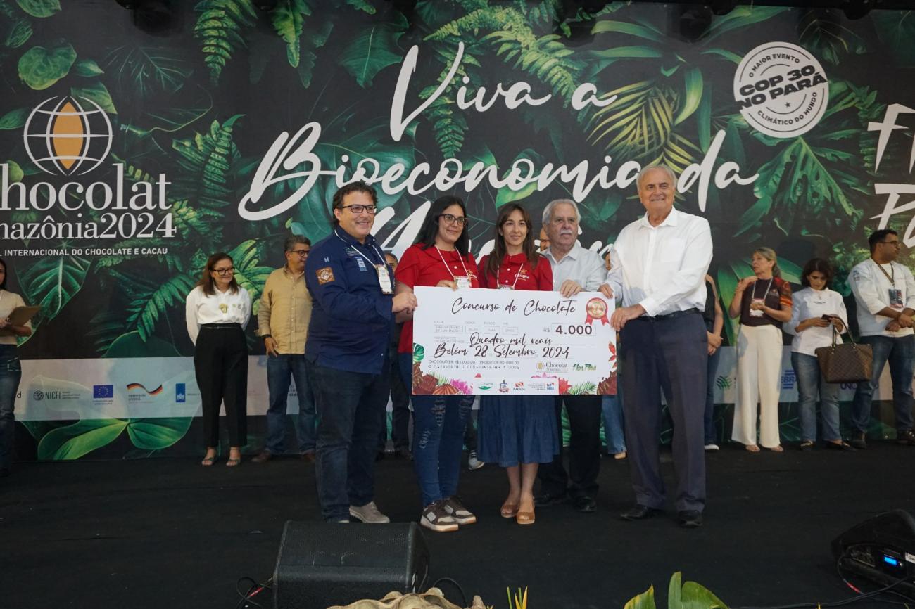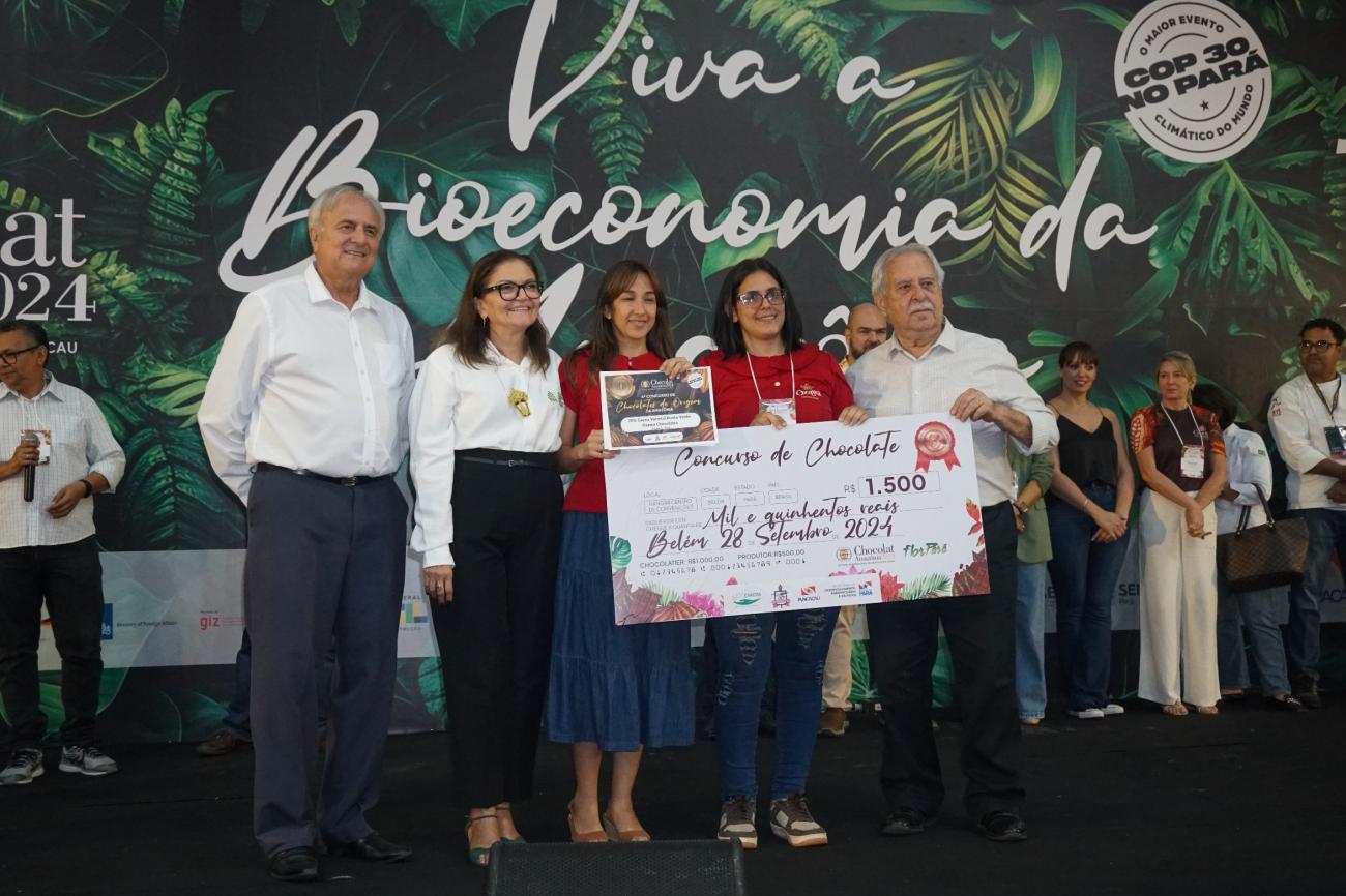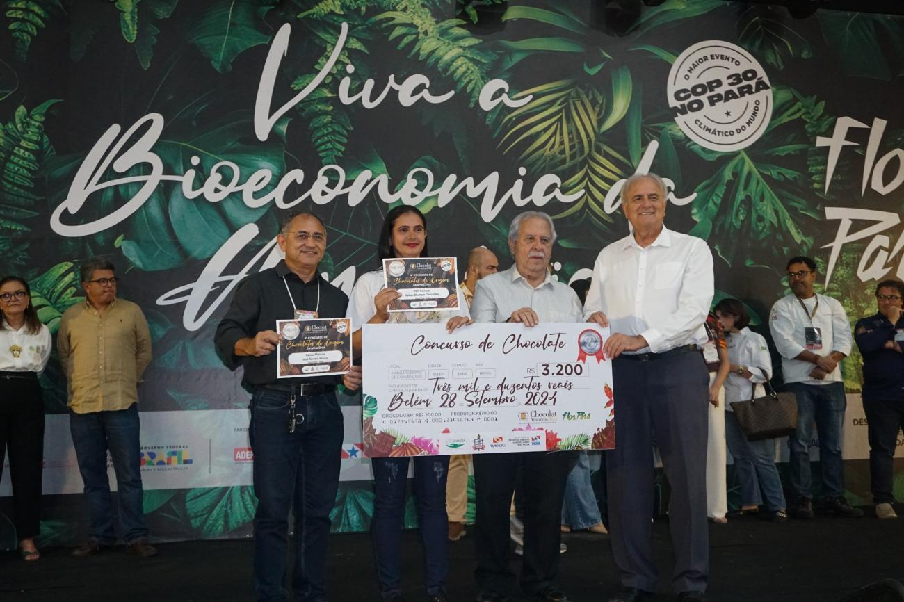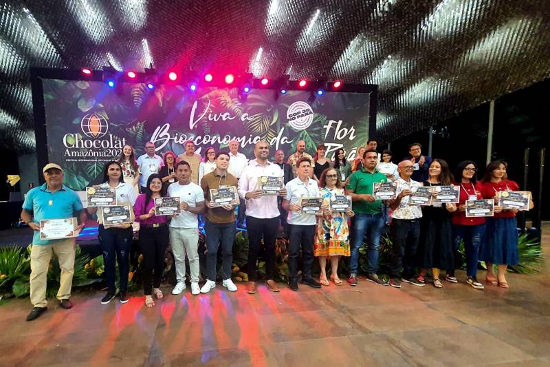 Chocolate - A solenidade no Hangar iniciou com a entrega dos prêmios de melhor chocolate do Pará. Esse foi o quarto ano que o CVACBA executou esse concurso dentro do Chocolat Amazônia. Os dois concursos, como explicou o professor Jesus Souza, coordenador do centro, foram idealizados para valorizar o chocolate e a amêndoa produzidas no Pará que já eram reconhecidos fora do Estado e precisam, também, ser agraciados com premiações localmente. Certame semelhante também foi realizada em Altamira, durante o Chocolat Xingu.