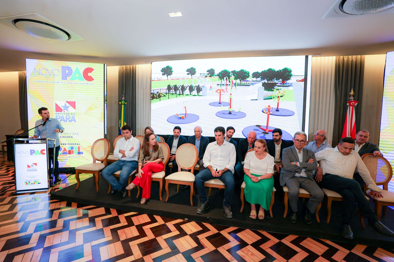 O governador comemorou ainda os anúncios relacionados ao Novo PAC. "Destaco aqui as obras de macrodrenagem na região da Bacia do Mata Fome, que precisa de intervenções, por ser uma das áreas com maior dificuldade de acesso ao saneamento, e agora a população passa a ter este benefício garantido, assegurado. As obras do Ver-o-Peso, que ampliam as intervenções para a COP 30, assim como também celebro as novas unidades do Minha Casa, Minha Vida em Belém e em Ananindeua, só hoje são mais de 1,9 mil contratações. Festejo a parceria com governo federal e reafirmo o compromisso do governo do estado de garantir com que estas obras possam trazer melhorias, geração de emprego e renda, mais qualidade de vida e desenvolvimento", complementou.
