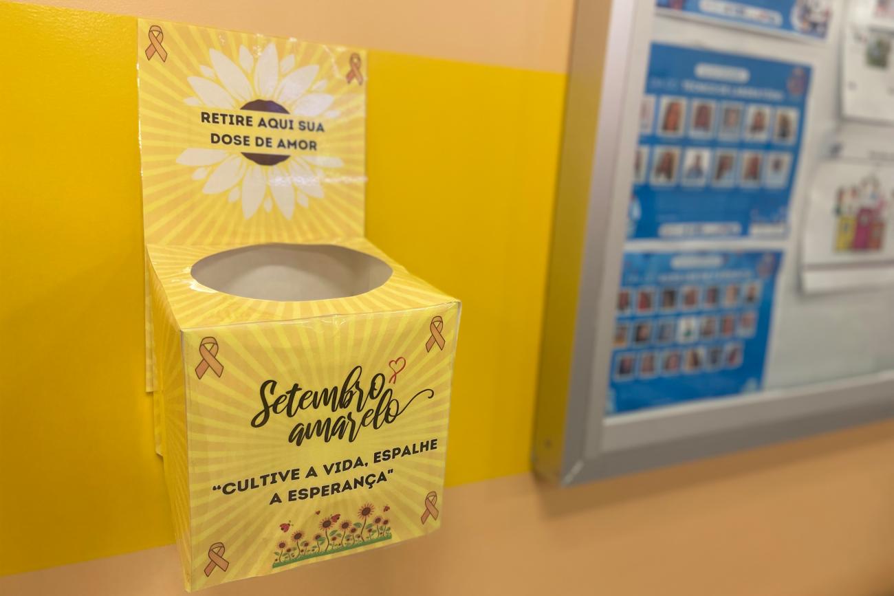 A iniciativa, promovida pelo Grupo de Trabalho Humanizado (GTH), teve a participação das psicólogas Amanda Barros e Fernanda Lima, no térreo do Complexo dos Caetés. Durante todo o mês, caixas com frases motivacionais foram estrategicamente colocadas nas Recepções e corredores do Hospital, reforçando o cuidado contínuo com a saúde mental e incentivando a reflexão entre as pessoas que transitaram em setembro pela unidade.