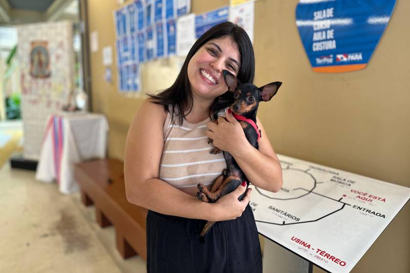Ingrid Farias, de 24 anos, é moradora do bairro do Jurunas e aproveitou a oportunidade para cuidar da saúde do Lucky, um cão da raça Pinscher. “Às vezes a gente não tem tantas oportunidades como a usina consegue proporcionar. E cuidar principalmente dos nossos animaizinhos, que nos transmitem tanto amor e carinho. Eu fico muito feliz de estarem proporcionando essas consultas”, disse.
