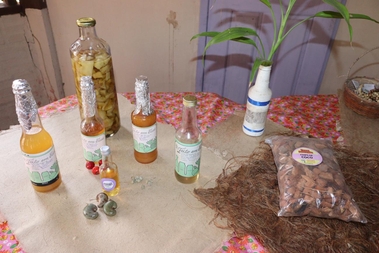 Estrudantes da Escola de Saberes têm a oportunidade de trocar e apreender experiências com as comunidades tradicionais"A floresta em pé é condição inegociável para a agricultura familiar", declara a diretora da Fecaf, Mairna Dias. Segundo ela, a produção sustentável é uma diretriz do setor. "A agricultura familiar é aquela que põe a comida realmente na nossa mesa. E a questão de poder articular essas economias, hoje a gente vê em larga escala. Por exemplo, na Federação, nós trabalhamos com vários ativos florestais, como sementes, frutas. Então, os nossos cooperados já percebem a importância, por exemplo, de não tocar fogo nas roças para poder abrir novos espaços para a plantação. É importante que a gente tenha acesso a esses agentes do estado e também dos saberes das construções pessoais, porque na agricultura familiar a gente percebe que a força da família, a opinião de cada um, diz muito com o que eles vão plantar naquele ano, a forma como eles vão fazer o manejo", completa a diretora.Produtos da Terra Dourada, linha criada pelos produtores familiares de Cotijuba e apresentados aos alunos da Escola de Saberes