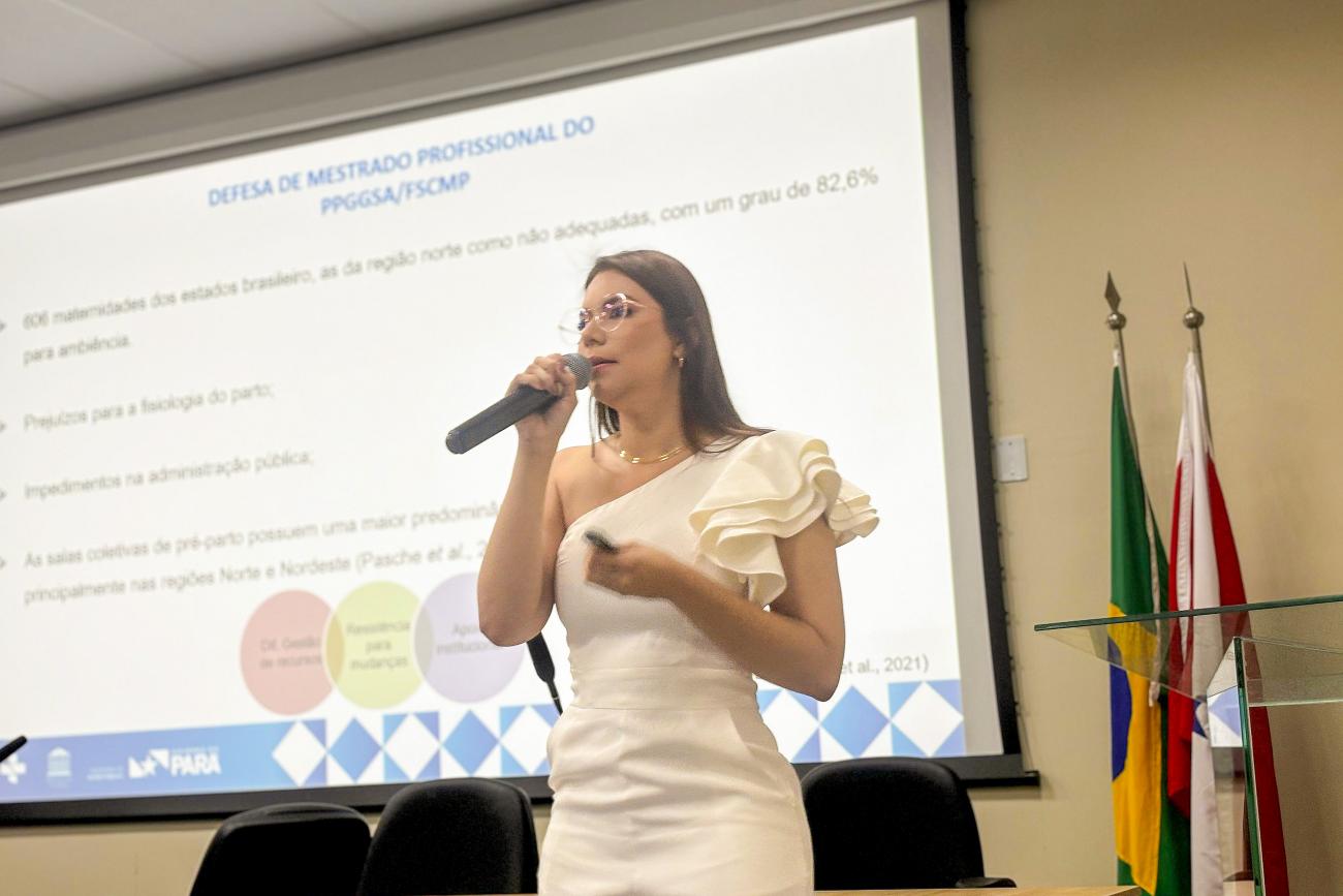 Lorena Barroso, enfermeira com atuação na cidade de Tucuruí, sudeste do estado, fez a sua defesa do mestrado com o tema: ‘Adequação de Centro Obstétrico: Uma proposta de intervenção.