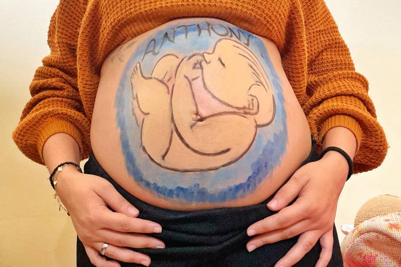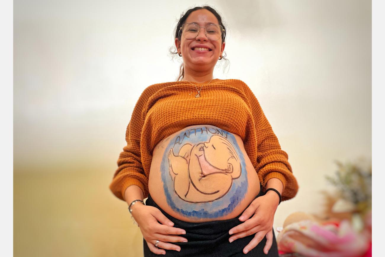 As artes são realizadas nas barrigas das gestantes e proporciona ainda um momento celebração da gestação