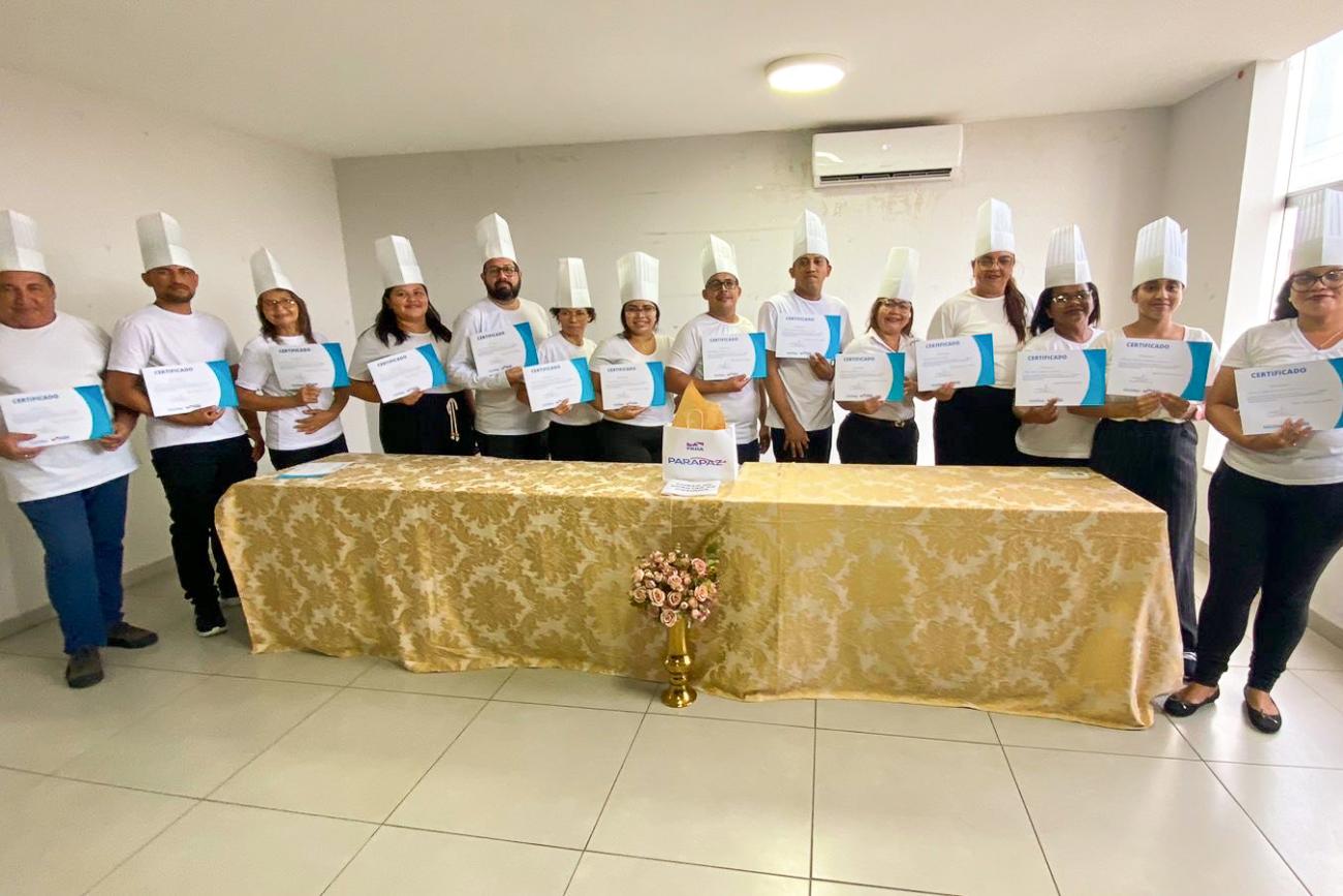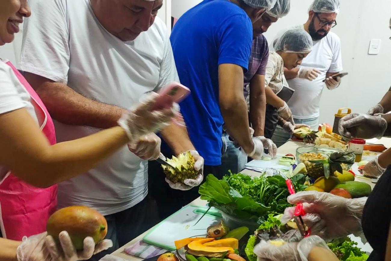O curso de “Auxiliar de Cozinha”, concluído na terça-feira (08), foi dividido em quatro módulos, nos quais os alunos aprenderam sobre o perfil do auxiliar de cozinha, conhecimento e manuseio de utensílios, preparação de molhos, técnicas de cortes de proteínas, produção de saladas, empanados e salgados, entre outros. Ao final, 19 alunos foram certificados, sob a orientação do professor Jardiel Barros, chefe de cozinha e proprietário do Buffet Veneza.