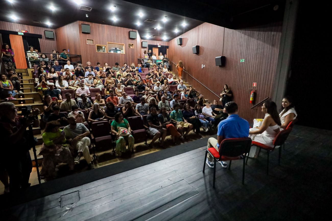 Nesta quarta-feira (9), o Cine Líbero Luxardo foi o cenário de uma noite especial com a estreia do filme “Pasárgada”, que marca a primeira experiência da atriz paraense e Dira Paes como diretora e roteirista. O longa, que já havia sido exibido no 52º Festival de Cinema de Gramado, onde conquistou o prêmio de Melhor Desenho de Som, foi apresentado em uma sessão lotada, com a presença de quase 100 espectadores. O evento contou com a participação de Dira Paes e da produtora executiva Eliane Ferreira, e foi seguido de um debate mediado pelo cineasta paraense Fernando Segtowick.