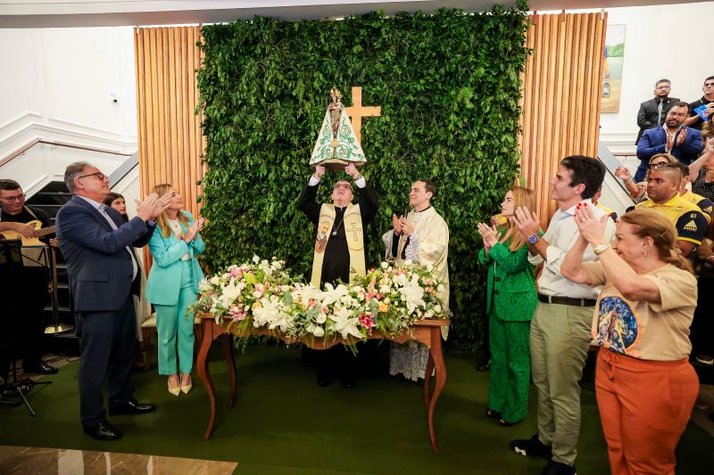A cerimônia de recepção da imagem foi conduzida pelo governador Helder Barbalho, acompanhado de outros servidores do governo e autoridades locais.