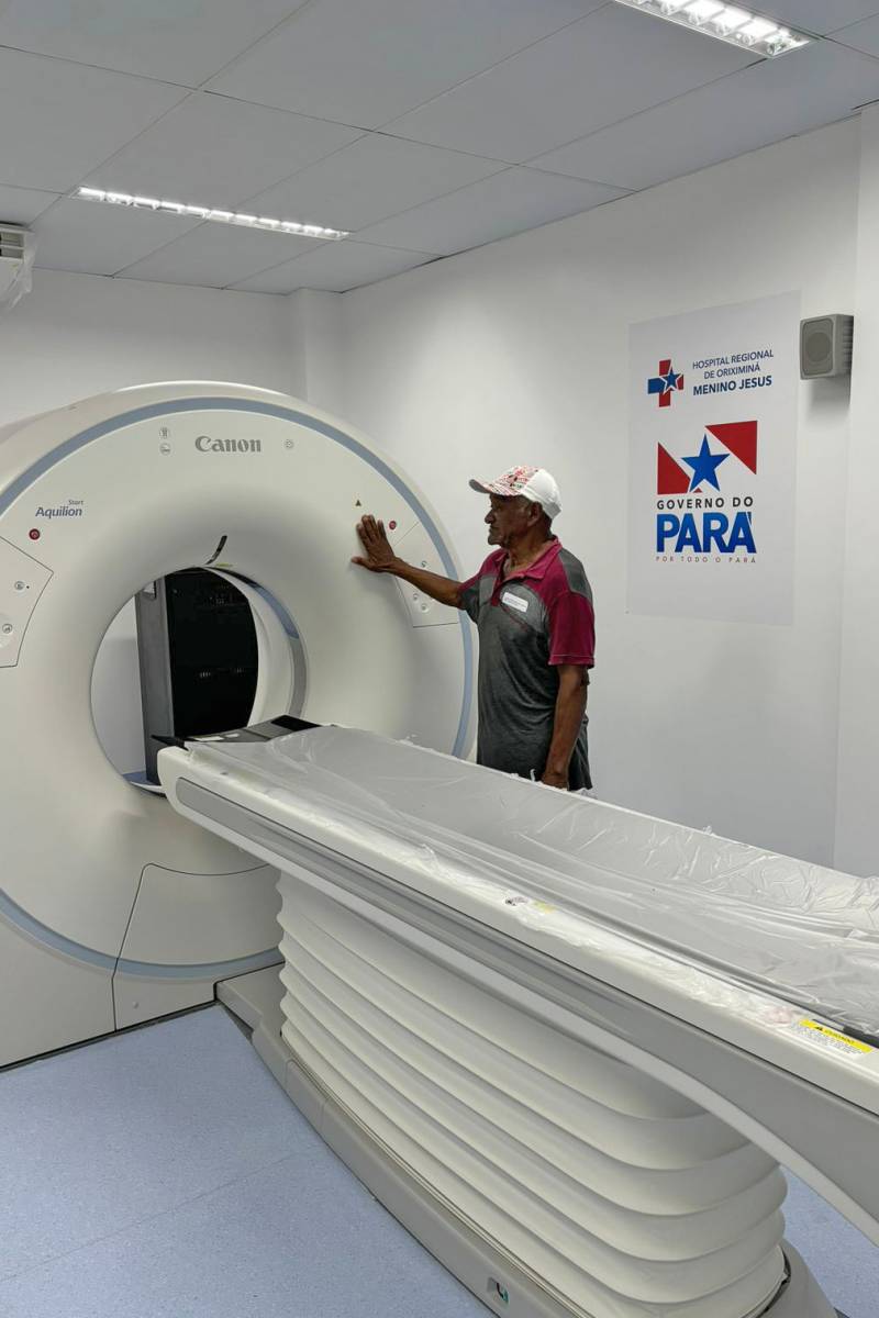 Contente e surpreso com a infraestrutura e tratamento que recebeu, o aposentado José Guedes quis conhecer o hospital por completo. Foi em várias áreas e até pousou para fotos na sala onde está instalado o tomógrafo. Alegre, ele voltou a agradecer a construção da unidade e citou que seus pais e avós já falavam dessa necessidade havia anos.