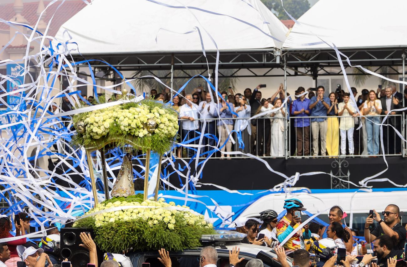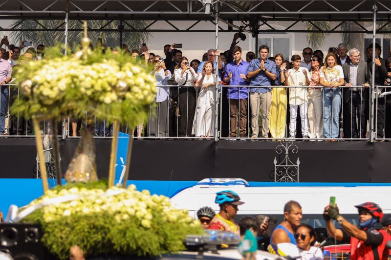 Na manhã desta sexta-feira (11), marcada pela devoção mariana do Círio de Nazaré, em Belém, por volta das 9h, a imagem peregrina de Nossa Senhora de Nazaré conduzida na procissão do Traslado para Ananindeua e Marituba, recebeu homenagens de servidores estaduais e de autoridades, que esperam a romaria na frente do Palácio do Governo do Estado, na avenida Almirante Barroso.