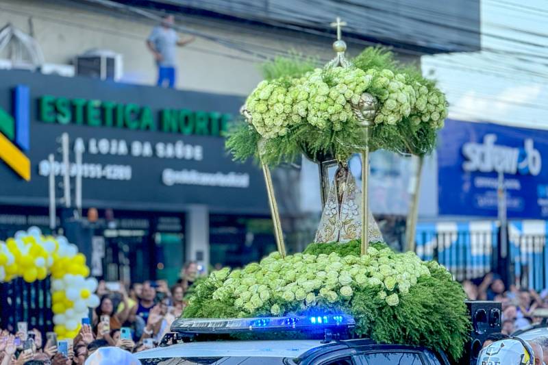 Mais de 800 agentes públicos reforçam as ações de segurança, durante o cortejo, que teve início às 8h, após a Santa Missa, na Basílica Santuário. A Imagem Peregrina foi colocada no andor em uma viatura da Polícia Rodoviária Federal (PRF) e segue em cortejo até a igreja Matriz de Ananindeua.
