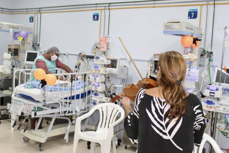 Música para quem ainda não pode deixar o leitoTratamento diferenciado - Mãe da paciente Rebeca Sousa, 9 anos, em tratamento há seis anos contra leucemia, no Hospital Oncológico Infantil Octávio Lobo, Révelly Sousa destaca o atendimento a crianças e adolescentes na região amazônica. Em alusão à data, a unidade garantiu programação musical com artistas voluntários da instituição, além de brincadeiras e distribuição de presentes aos pacientes internados e ambulatoriais.