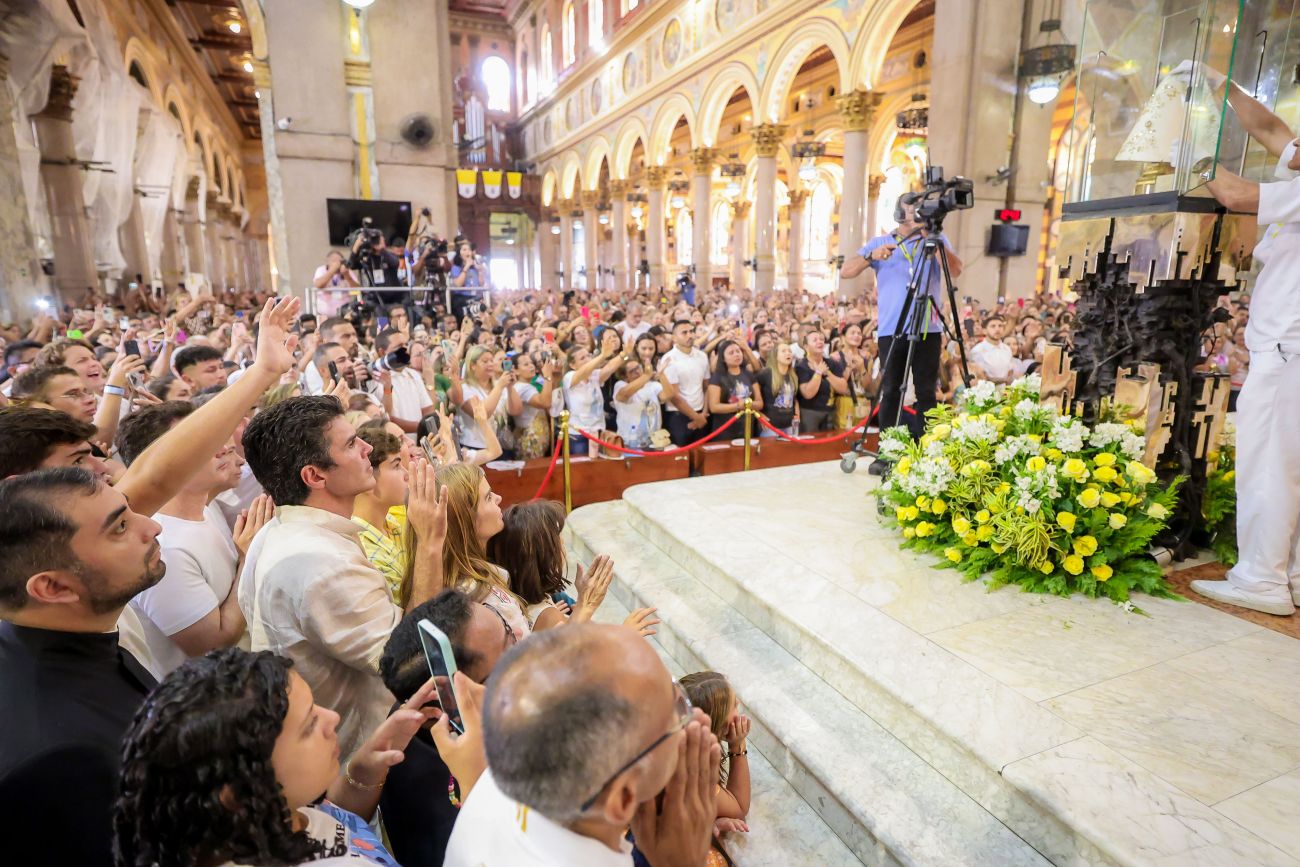Neste sábado, 12, a Basílica Santuário de Nazaré, milhares de devotos se reuniram, dentro e fora do Santuário, para presenciar um dos momentos mais esperados, a descida da imagem original de Nossa Senhora de Nazaré. O evento atrai fiéis de diversas partes do Estado, do Brasil e do mundo.