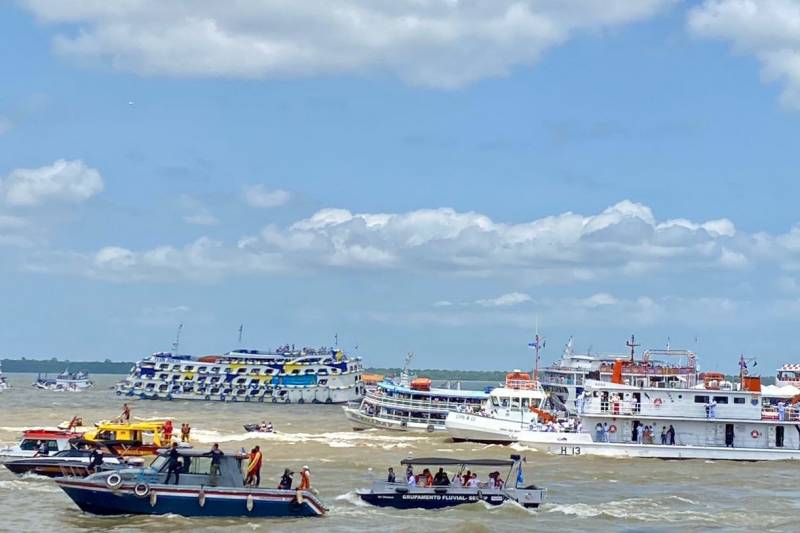 Para as romarias desta manhã, foram mobilizados mais de 800 agentes de segurança pública no trajeto e percurso das Romarias Fluvial e Moto Romaria. No Círio Fluvial, quando a Imagem Peregrina de Nossa Senhora de Nazaré percorre as águas da Baía do Guajará, um dos momentos mais bonitos da quadra nazarena, as forças de segurança atuaram na ordenação das embarcações de pequeno, médio e grande porte. Com saída às 9h, a romaria chegou por volta de 11h na Escadinha do Cais do Porto.