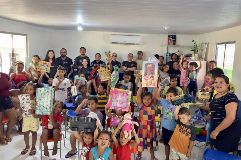 No dia dedicado às crianças, servidores da Secretaria de Estado de Administração Penitenciária (Seap) promoveram uma ação social para alegrar a comunidade de São Francisco do Itá, localizada no município de Santa Izabel do Pará. Todos os brinquedos doados foram arrecadados durante a Corrida Solidária, que envolveu os integrantes do Curso de Padronização de Procedimentos Operacionais (CPPO), e foi realizada na última quinta-feira, no Parque Estadual do Utinga. Foram arrecadados 150 brinquedos durante o evento.