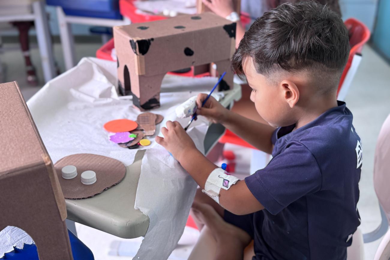 A oficina foi conduzida pela equipe do Atendimento Educacional Hospitalar e Domiciliar, da Secretaria de Estado de Educação (Seduc), que orientou os pequenos na criação de brinquedos e objetos decorativos a partir de materiais que, geralmente, seriam descartados.