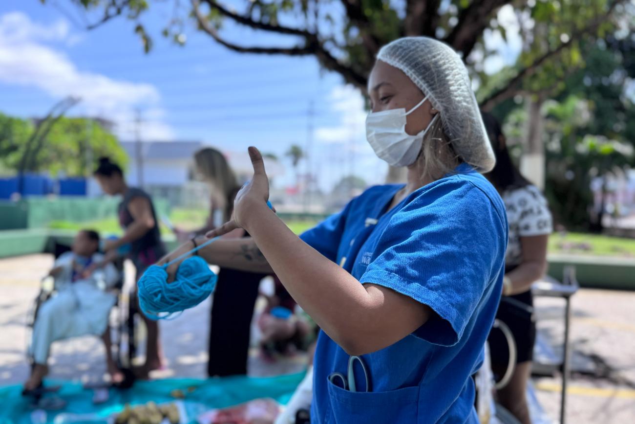 “É muito gratificante saber que essas atividades são realizadas aqui dentro, principalmente para as crianças. Isso faz com que elas esqueçam um pouco dos seus traumas e brinquem com os outros amiguinhos”, comentou Elaise de Oliveira, vinda de Itaituba, sudoeste paraense, para acompanhar a neta que está em cuidados no Centro de Tratamento de Queimados (CTQ).