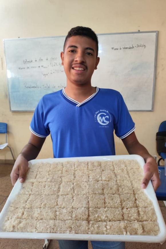 O projeto 'Essa Flora é Minha Renda', envolveu 87 estudantes da 2ª série do Ensino Médio em uma aula prática interdisciplinar e investigativa para extração do óleo de coco e outros subprodutos do fruto