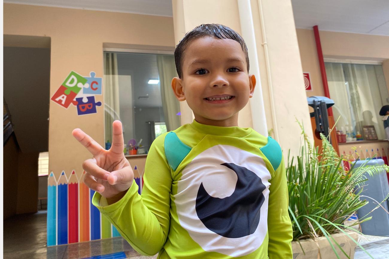 “Eu brinquei de bola na piscina e foi muito divertido. Eu brinquei com meus amigos no pula-pula, na quadra e foi muito legal. Me diverti bastante”, afirma Ravi Daniel, 4 anos.