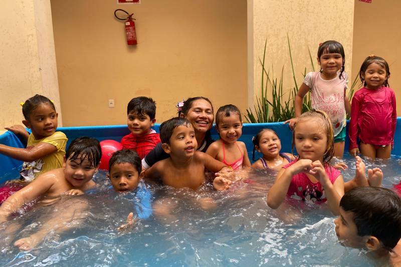 A creche trouxe uma ampla diversidade de atividades para contagiar as crianças. Pula-pula, tobogã inflável, piscina, oficinas de arte e brincadeiras no parquinho e cinema educativo animaram os presentes.