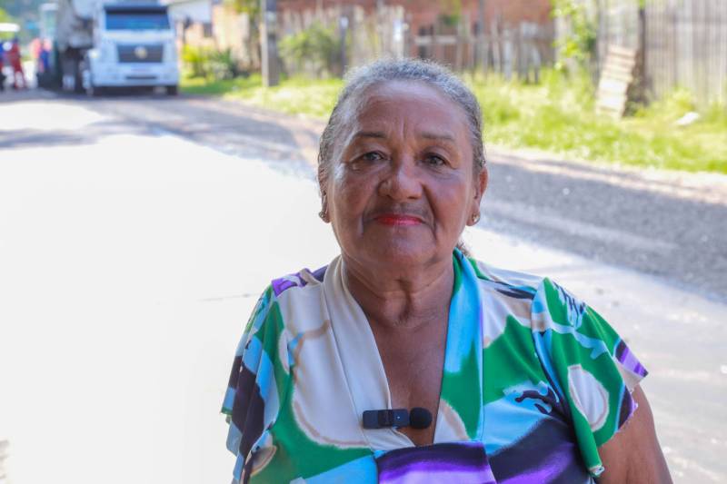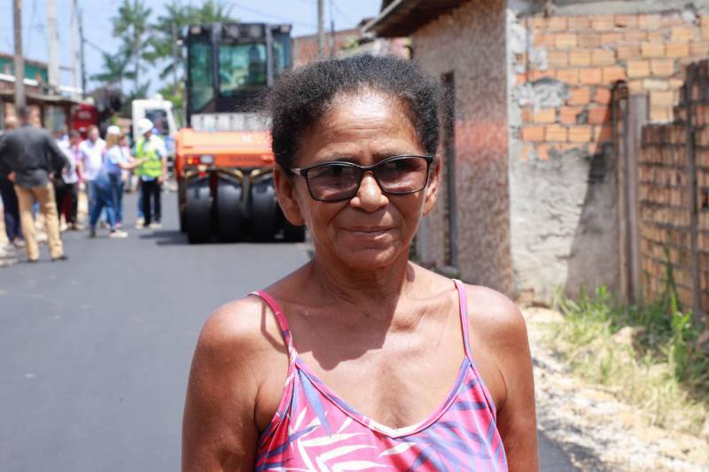 Margarida dos SantosMargarida dos Santos mora na Rua da Alegria há 25 anos. Emocionada com a execução dos serviços, ela fala da satisfação em receber o asfalto novo na porta de casa. "Esse é um dia de muita alegria. O asfalto está me tirando do sofrimento, é uma bênção para mim, meus familiares e quem mora aqui. Eu nem dormia mais pensando nesse asfalto. Já cavei muita vala para tirar a lama da porta de casa, comprava aterro para ver se melhorava. Agora não tem mais nada disso, é só ficar tranquila em casa, apreciando o asfalto", conta a moradora.