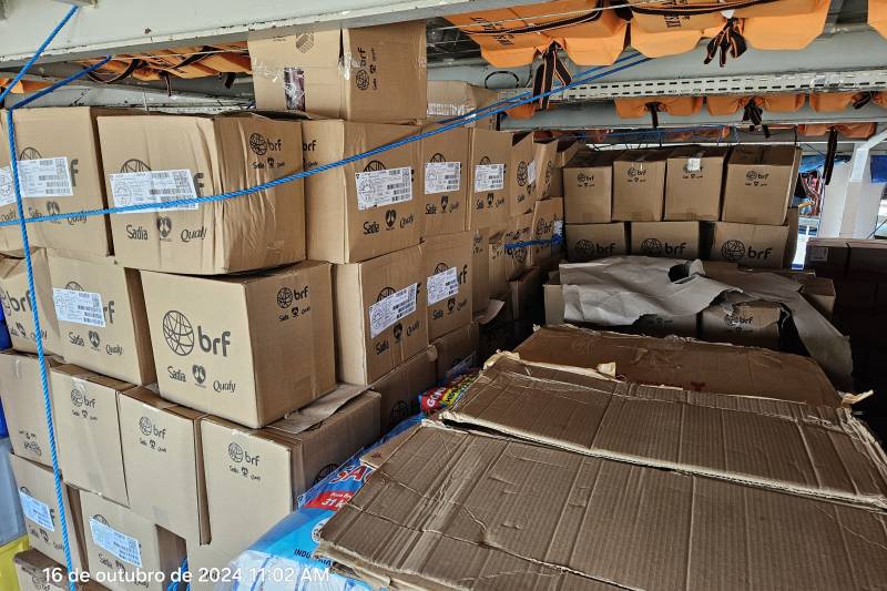Tapajós - Já no município de Santarém, oeste paraense, na região do Baixo Amazonas, durante operação de fiscalização na região portuária da cidade, realizada também na quarta-feira, 16, os agestes da Sefa apreenderam 600 caixas de linguiça; 300 caixas de carne em conserva e 500 caixas de leite. Também foram localizadas 700 caixas de óleo de soja destinadas à pessoa física, ficando caracterizado o intuito comercial.
