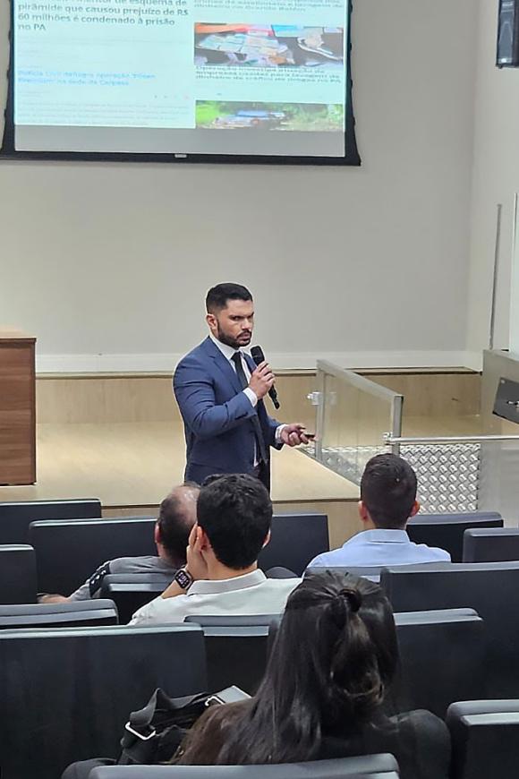 Dentre os palestrantes, a PCPA foi representada pelo delegado Alexandre do Nascimento, vinculado à DECOR. O delegado foi convidado para compartilhar a experiência da Divisão de Repressão à Lavagem de Dinheiro (DRLD/DECOR) no enfrentamento a esses crimes, com foco em investigações que envolveram delitos ambientais no Pará, servindo como crime consequente à lavagem de dinheiro.