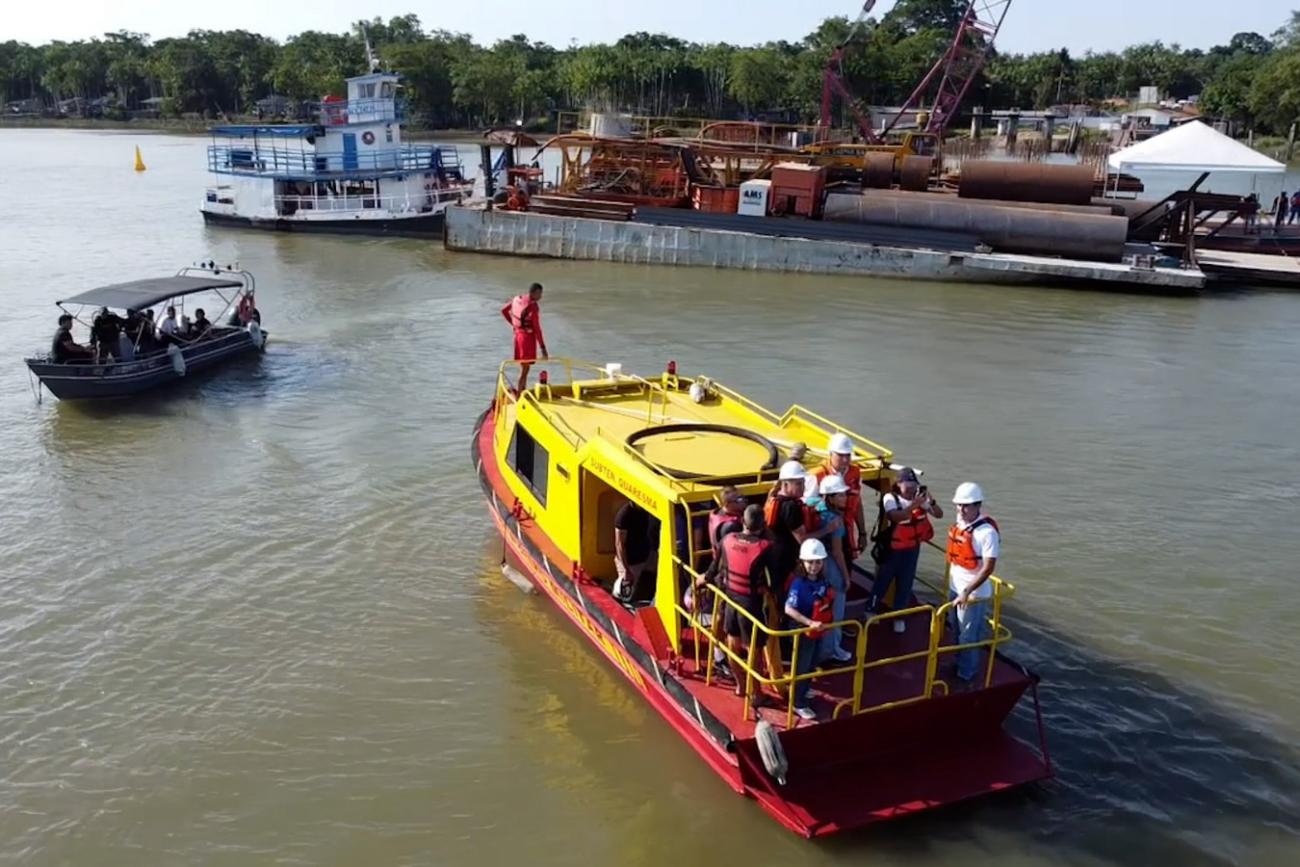 O projeto segue avançando com a cravação das estacas e o início da montagem do mastro central, uma etapa fundamental da estrutura estaiada, que permitirá dois vãos de navegação de 117 metros cada, garantindo mais segurança ao tráfego aquaviário.