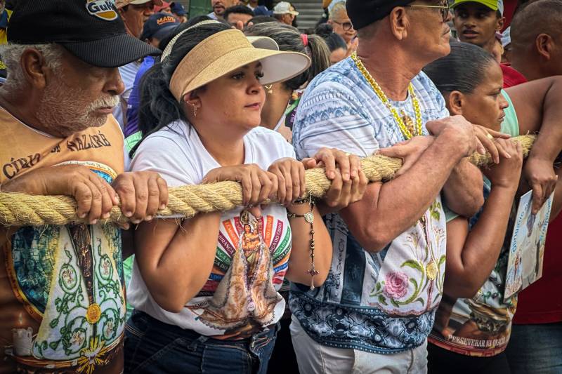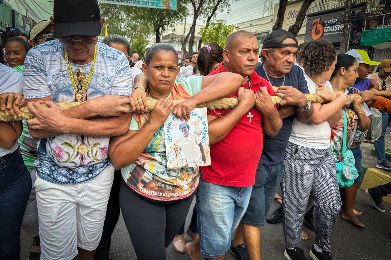 Laurina de Sousa Silva estava na corda, também pagando uma promessa pela tia dele que esteve 20 dias entubada. “Hoje eu vim só agradecer à Virgem de Nazaré pela saúde dela [tia]. E hoje nós estamos todos felizes. A gente foi para o hospital quando chegou lá o médico disse que ela tinha que ser entubada e a entubação para a gente já é umasentença de morte, mas com a Virgem de Nazaré, e o nosso Senhor Jesus Cristo, estou aqui pagando pela saúde dela. Hoje, ela está firme e forte para contar a história pra nós. É muita emoção, muita felicidade pra todos nós de casa”, expressa ela.