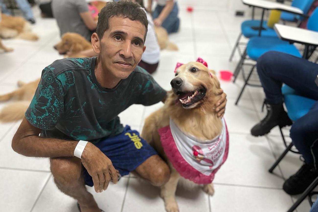 Usuário internado no HJB diz que tem cachorro e matou a saudade com a ação do Clube Goldens
