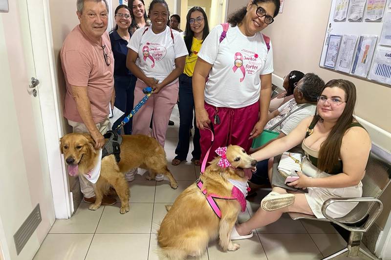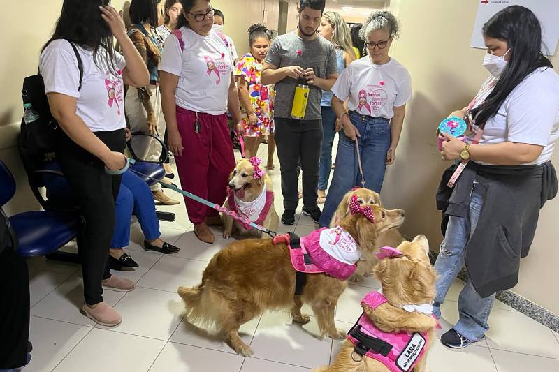 Usuários e acompanhantes do Hospital Jean Bitar receberam visita dos cachorros do Clube Goldens Belém