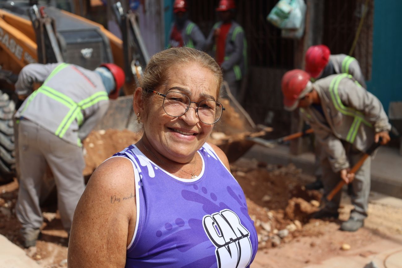 Hana Ghassan constatou no local o avanço das obras no bairroSaneamento - Para receber o asfaltamento, algumas ruas também precisam ter o serviço de terraplanagem e drenagem. Esse é o caso da Passagem Santana, que ganha a tubulação que vai facilitar o escoamento das águas da chuva.