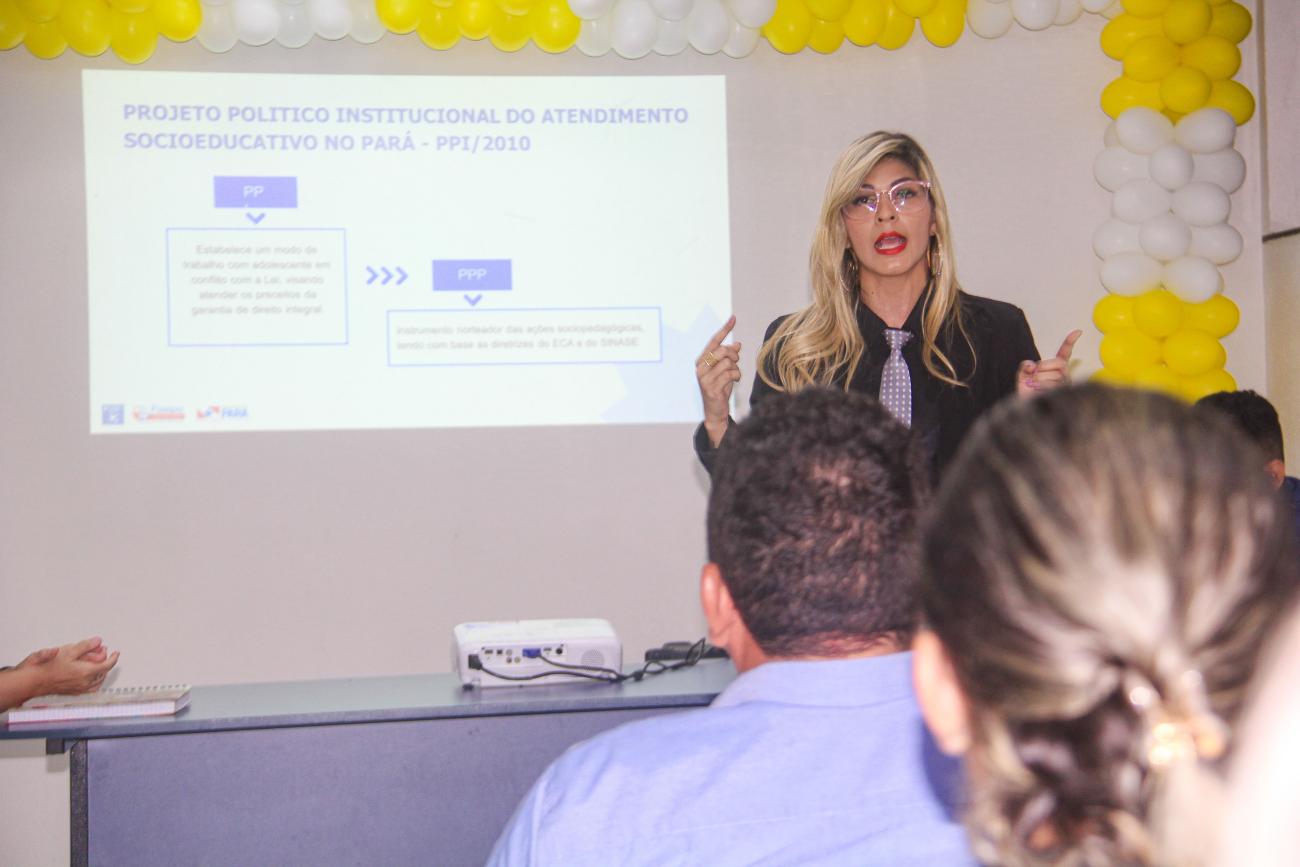 Psicóloga Ana Pessoa: dinâmica para entender o trabalho nas unidadesA pedagoga da Fasepa, Eliana Maia, ressaltou a importância da pedagogia da presença nas unidades de atendimento socioeducativo, enfatizando como essa abordagem ajuda a criar um ambiente de aprendizado mais acolhedor.