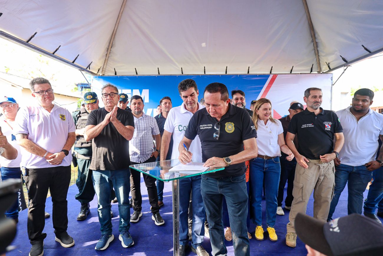 Mais segurança e atendimento chegam à população de Cotijuba, em Belém, com a assinatura da ordem de serviço para a construção da primeira Delegacia de Polícia Civil, na ilha. A assinatura autorizando a construção do prédio na localidade, ocorreu nesta quarta-feira, 23, e foi presidida pelo governador do Estado, Helder Barbalho. A obra terá recursos do Fundo de Investimento da Segurança Pública (Fisp), vinculado à Secretaria de Segurança Pública e Defesa Social do Pará (Segup).