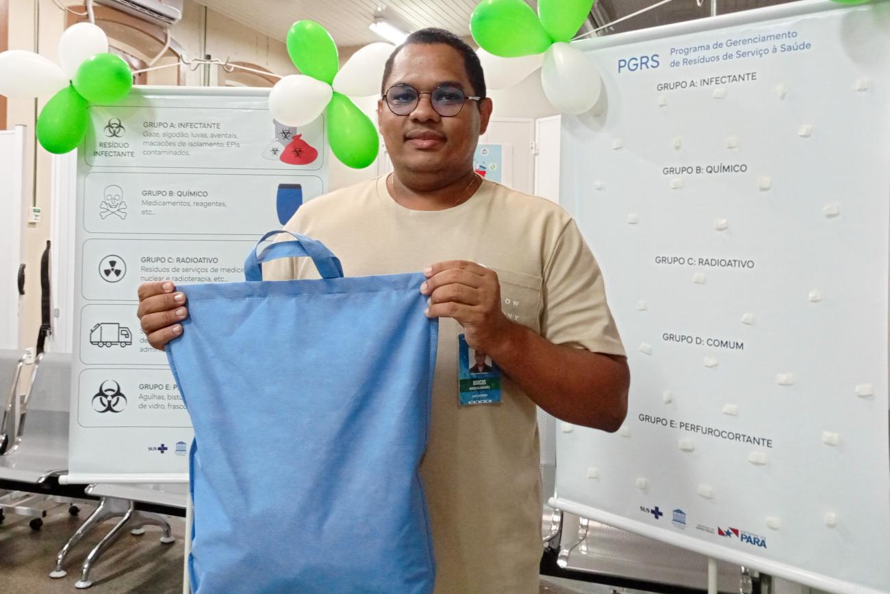 “A gente já está pensando nas iniciativas sustentáveis, com foco na COP 30, que já é ano que vem. Então, nas visitas aos setores para avaliar os descartes eu observei que as mantas impermeáveis que são utilizadas para fazer a cobertura das caixas cirúrgicas, estavam sendo jogadas fora. Fizemos uma parceria com as coordenações dos centros cirúrgicos, que agora separam esse material e mandam para a gente. Assim transformamos o que ia para o lixo em bolsas que poderão ter utilidade futuramente em eventos na Santa Casa”.