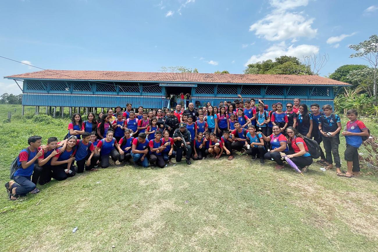 Agentes que atuam na Base Fluvial Candiru, em conjunto com o Batalhão de Polícia Militar local, agentes comunitários de saúde e membros do Conselho Tutelar de Óbidos, promoveram na última quarta-feira, 23, uma roda de palestras educativas e preventivas para 77 alunos do 6º ao 9º ano da Escola Municipal de Ensino Infantil e Fundamental Aristides de Aquino Vieira, localizada na comunidade de São Raimundo, no município de Óbidos, no baixo Amazonas.