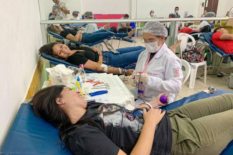 No campus da Uniesamaz, em Belém, doadores voluntários reforçaram a necessidade de manter o estoque de sangue do hemocentro