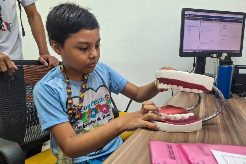 Entre os 3.222 usuários atendidos, está Elias Melo, 9 anos, que, nesta semana, acompanhado dos pais realizou a profilaxia (limpeza dentária). A mãe, Daniele Melo, de 39 anos, destaca a evolução do tratamento do filho e pontua os procedimentos realizados durante os três anos de acompanhamento no Centro.