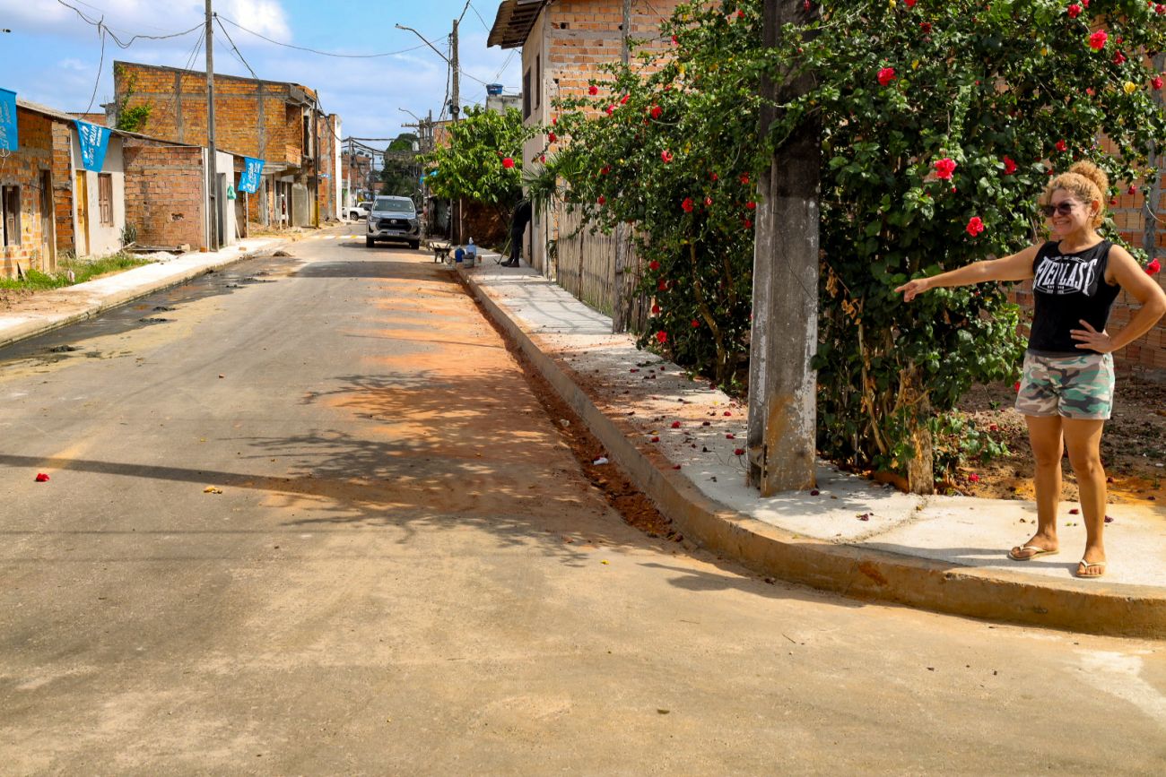 A dona de casa Renata Maria, que mora há mais de 20 anos no bairro do Tenoné, em Belém, celebra o avanço das obras de pavimentação asfáltica nas vias da área, que, mesmo antes da finalização, já promovem mais qualidade de vida aos moradores. “Quando chovia, alagava tudo ao nosso redor, precisávamos enfrentar muita lama para sair de casa. Tínhamos que levar o sapato nas mãos, para calçar após a área alagada. Uma obra como essa traz dignidade, posso dizer que ver o avanço das obras é um sonho realizado. Ficamos emocionados e agradecidos por ver essa transformação”, afirma.