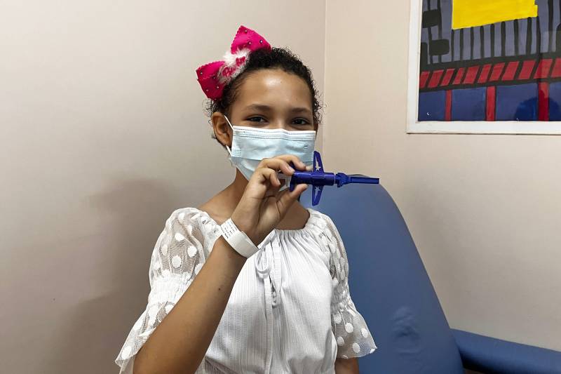 Ana Lúcia Silva, 35 anos, mãe da Ana Maria Sampaio, 11 anos, aprovou a iniciativa. “É importante porque realmente as crianças quando enxergam a agulha ficam com bastante nervosas, já vi algumas darem bastante trabalho, o medo faz até a veia desaparecer na hora da coleta. A menina está em tratamento contra um Sarcoma de Ewing, um tipo de tumor raro que se desenvolve nos ossos e nos tecidos moles ao redor deles. “Eu gostei achei diferente, bem legal, nem doeu”, disse a menina.