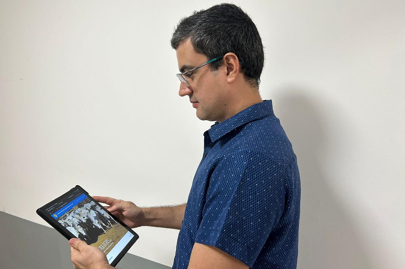 Danilo Brito - usando o sistema O SIGEAGRO 2.0 foi desenvolvido pela Unidade de Desenvolvimento e Suporte aos Sistemas Informatizados (UDSSI) e pela Gerência de Inteligência, setores formados pelos próprios servidores da Agência de Defesa. Servindo para hospedar todas as informações que serão geradas pelo Programa Pecuária Sustentável do Pará, que possui como um dos pilares a rastreabilidade de bovinos e bubalinos. "Nós elaboramos uma gestão de informação trazendo os dados da defesa agropecuária do Estado para os padrões mais atuais de mercado. Para atender melhor os serviços da defesa agropecuária. Será um processo constante de desenvolvimento. E nós vamos implementando as melhorias que atendem ao produtor e ao próprio servidor", destaca o fiscal estadual agropecuário e coordenador da Unidade de Sistemas da Adepará, Danilo Brito.